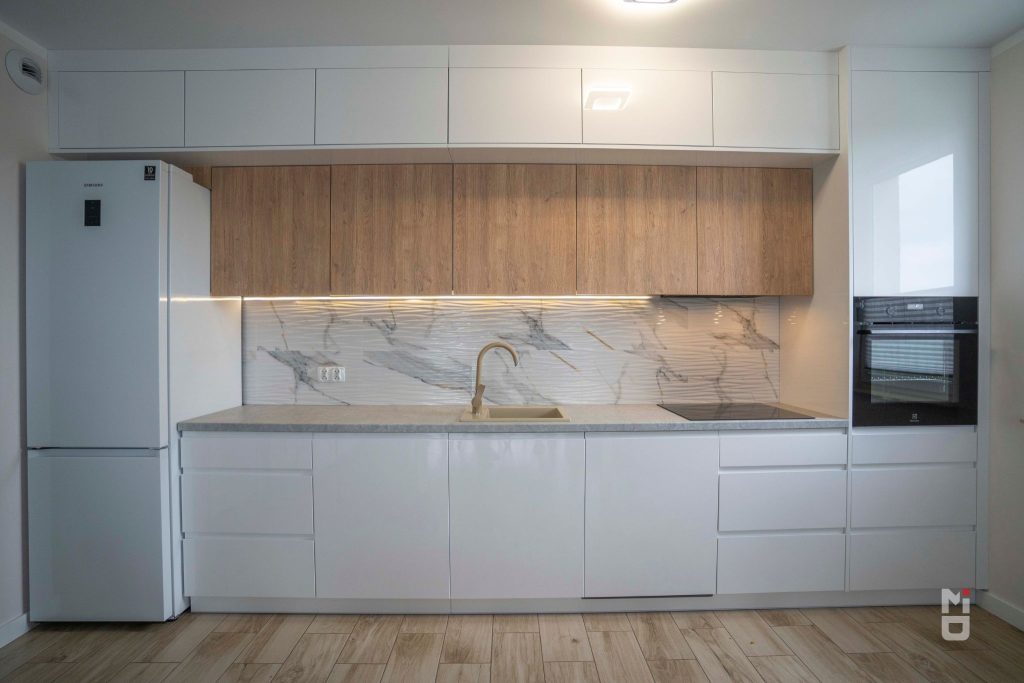 Dzięki nowoczesnym technologiom laminat jest znacznie trwalszy niż kiedyś. Jest odporny na zarysowania, nie wymaga skomplikowanej pielęgnacji i dobrze znosi codzienne użytkowanie. To świetny wybór do mieszkań inwestycyjnych, kuchni rodziny z dziećmi i projektów, gdzie liczy się rozsądny budżet.