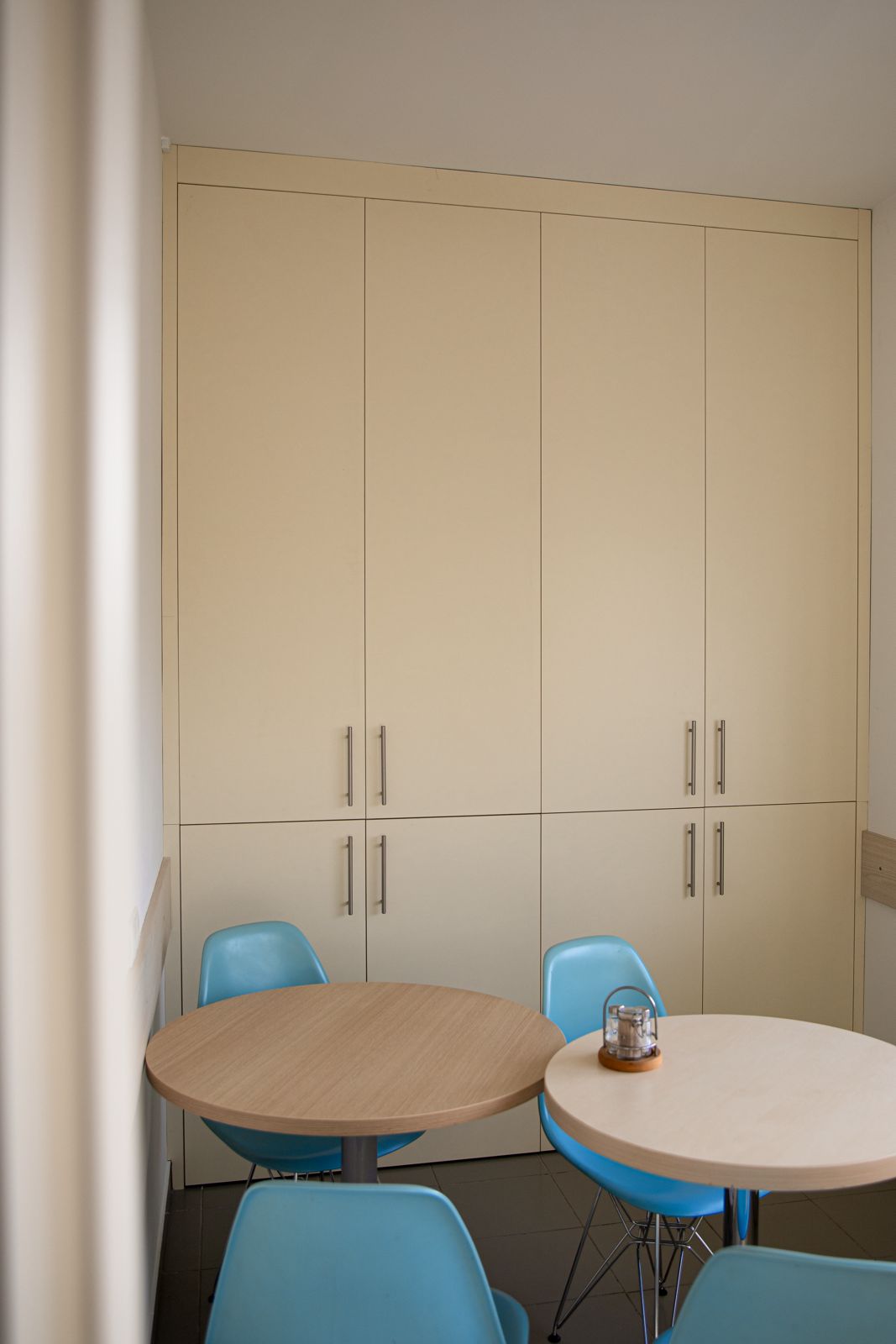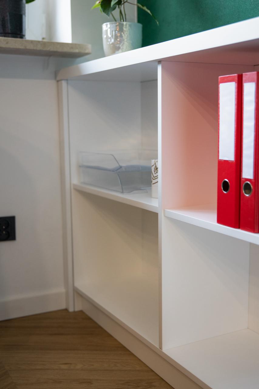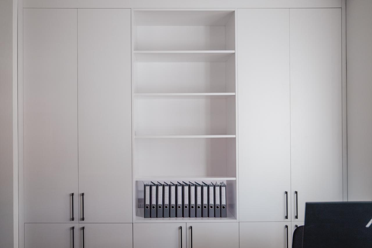 - Laminat biały Pfleiderer – w szafach biurowych,