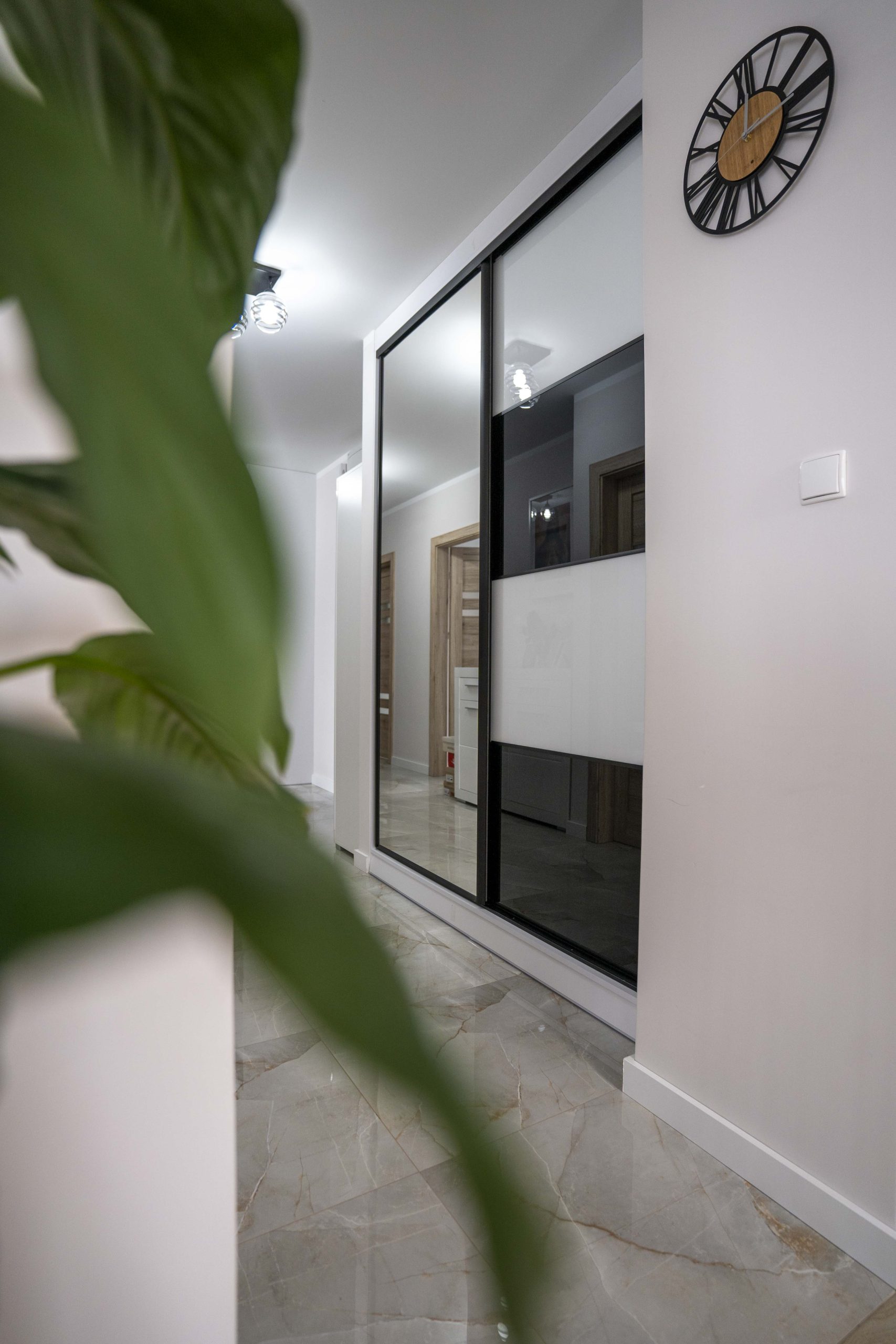 - Lustro na całej powierzchni frontu w prawej szafie przy wejściu