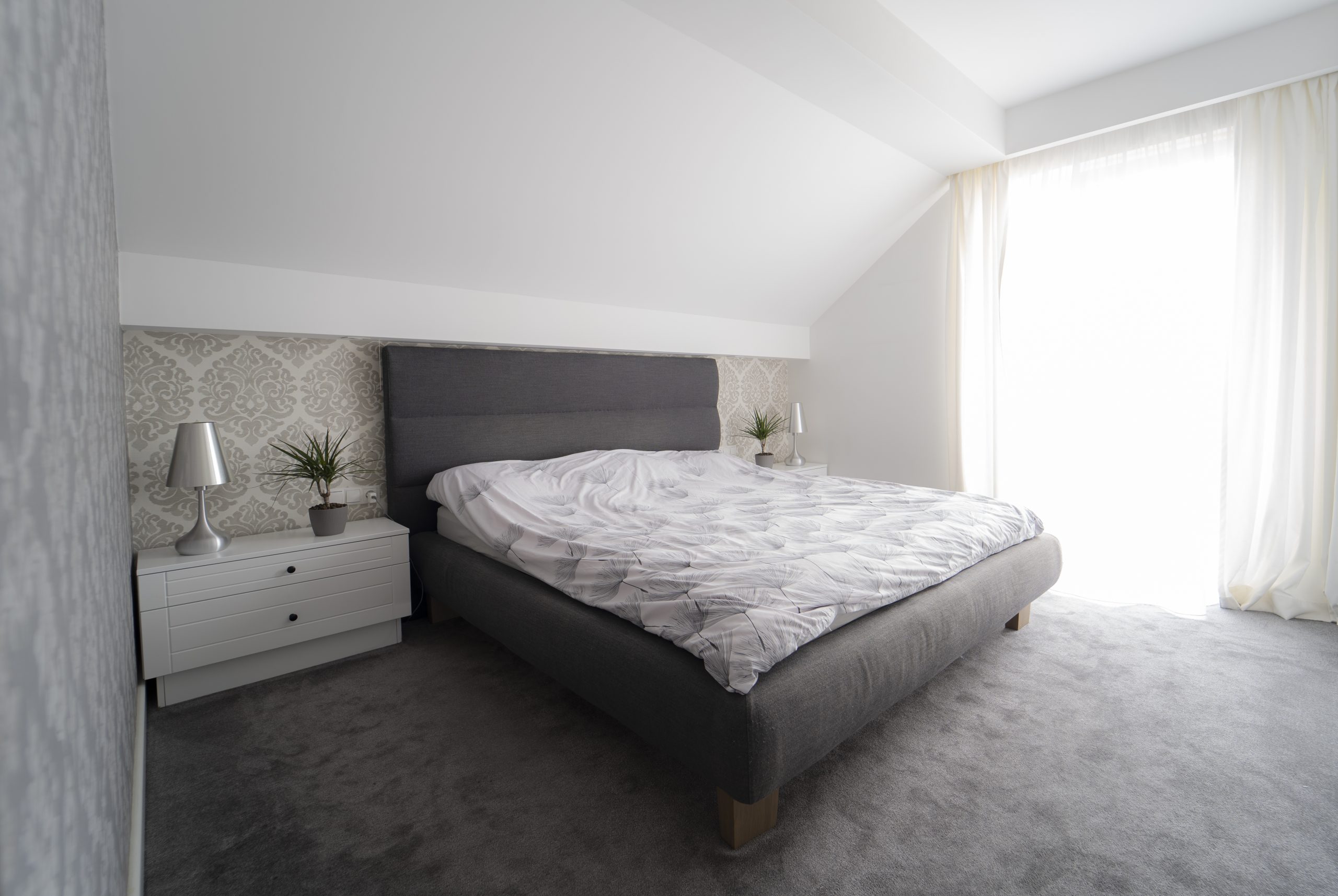 Biurko zostało rozbudowane o system półek i dolną szafkę z organizacją okablowania. Szafka RTV i szafki nocne zostały zaprojektowane tak, by nie dominowały we wnętrzu, ale dopełniały je estetycznie i użytkowo. Winiarka została wykonana jako mebel niezależny, z przeszklonym frontem i wewnętrznym podziałem, stanowiąc dekoracyjny, ale funkcjonalny element salonu.